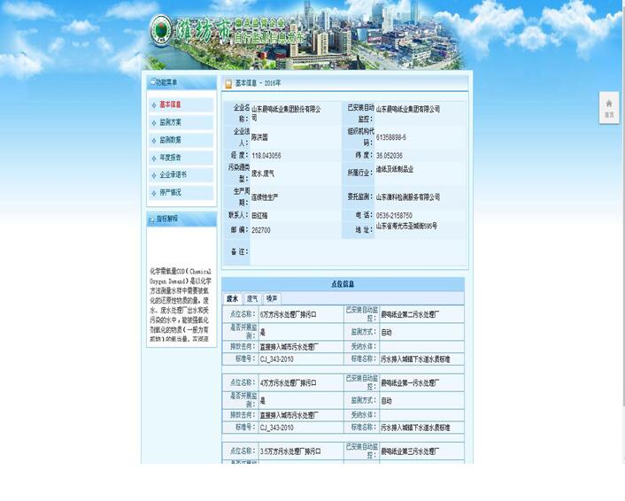 山東晨鳴紙業集團廢水、廢氣自測公示161013